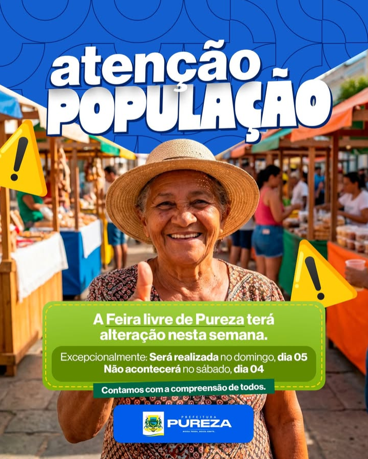 Atenção, população de Pureza! Informamos que, excepcionalmente nesta semana, em virtude da Semana Santa, a Feira Livre de Pureza …